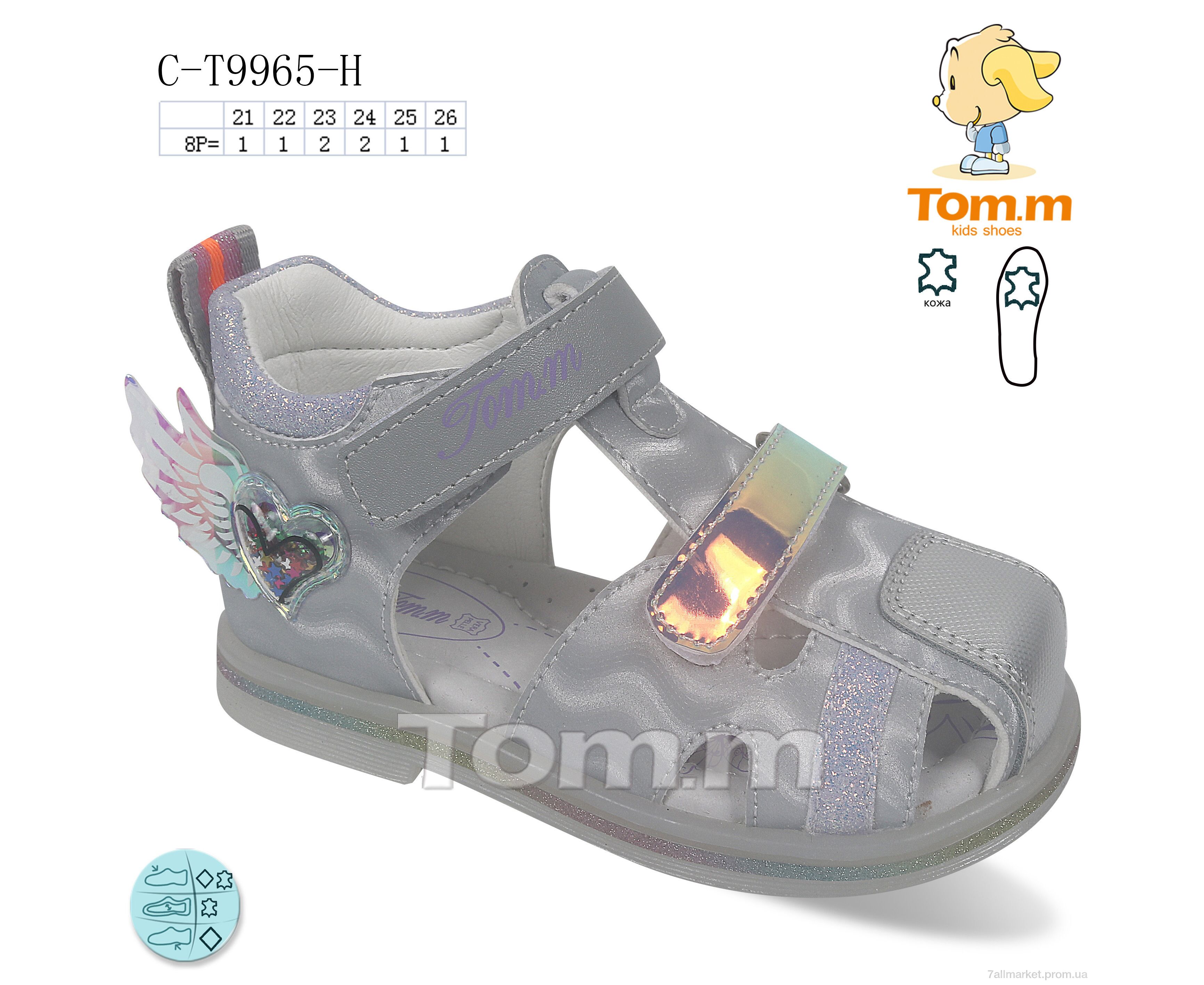 Босоножки детские летние Лето C-T9965-H (8 пар р.21-26) "TOM.M" недорого оптом от прямого поставщика