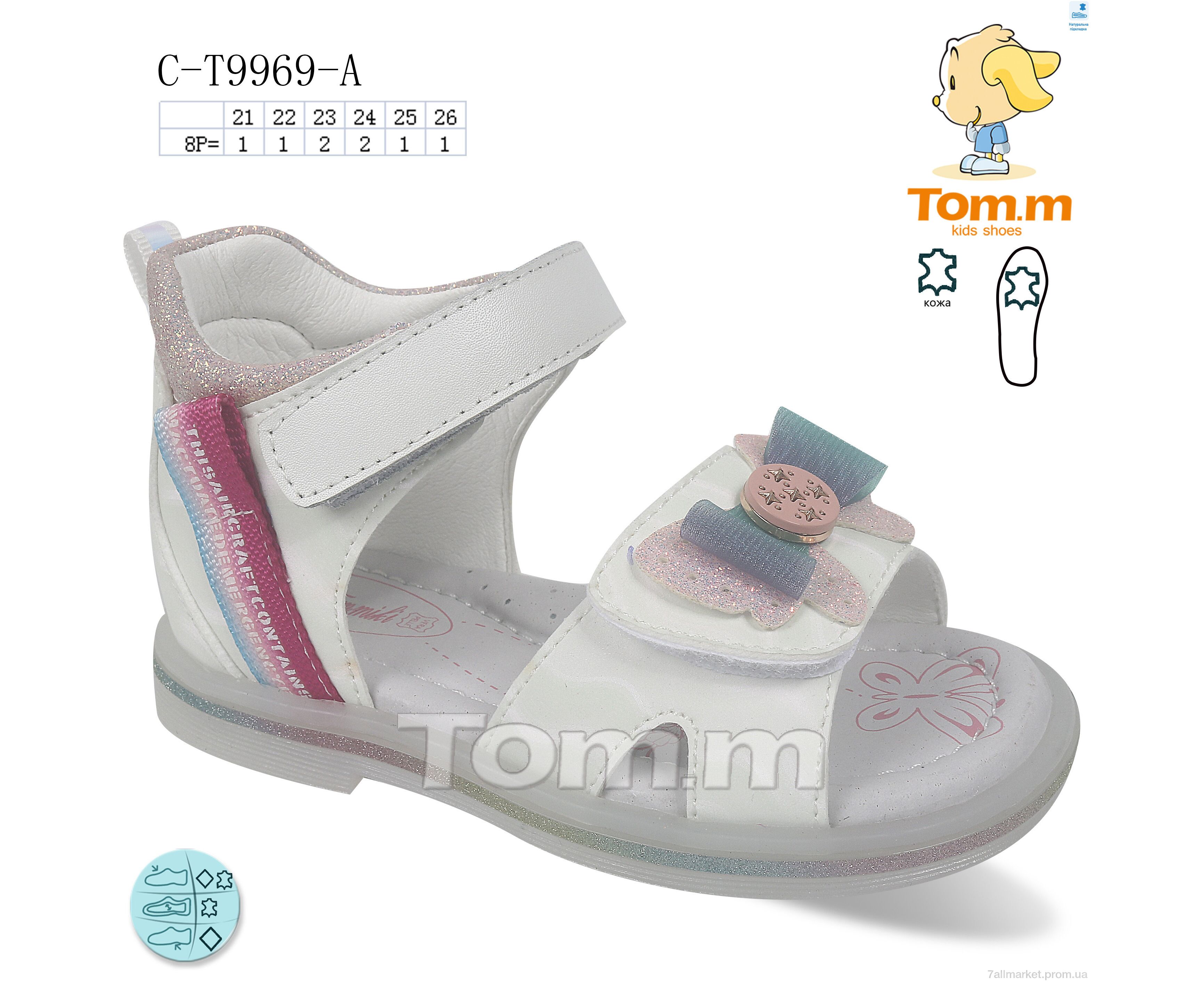 Сандалии детские летние Лето C-T9969-A (8 пар р.21-26) "TOM.M" недорого оптом от прямого поставщика