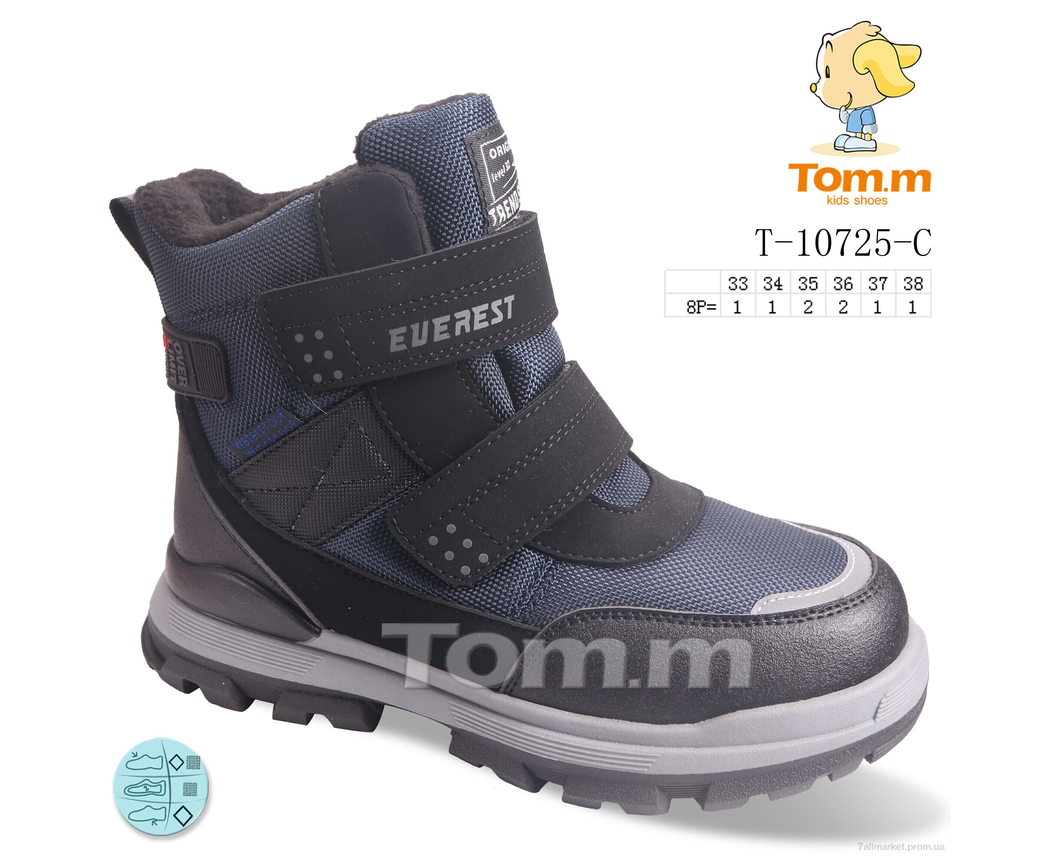 Ботинки детские удобные Весна/осень T-10725-C (8 пар р.33-38) "TOM.M" недорого оптом от прямого поставщика
