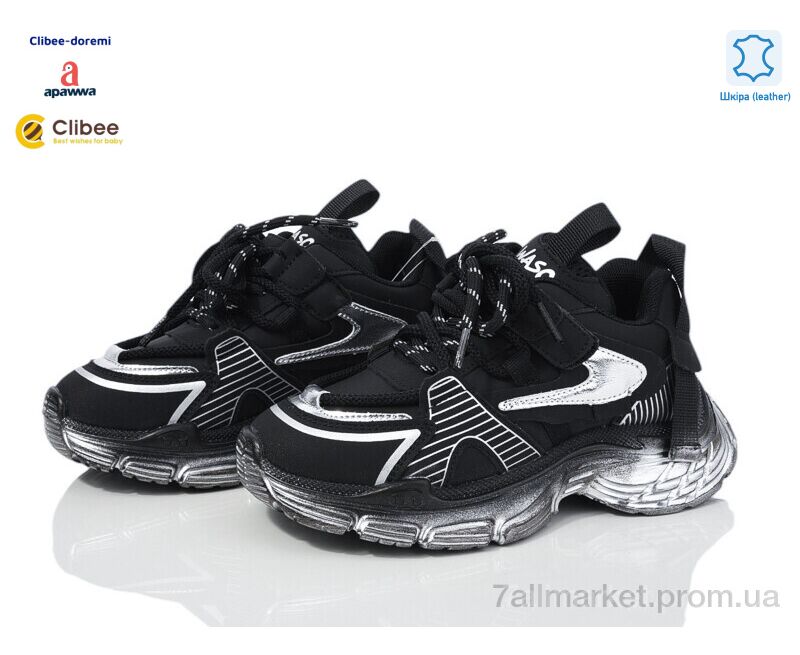 Кроссовки детские модные Весна/осень AS866517 black (7 пар р.31-37) "Clibee-Doremi" недорого оптом от прямого поставщика