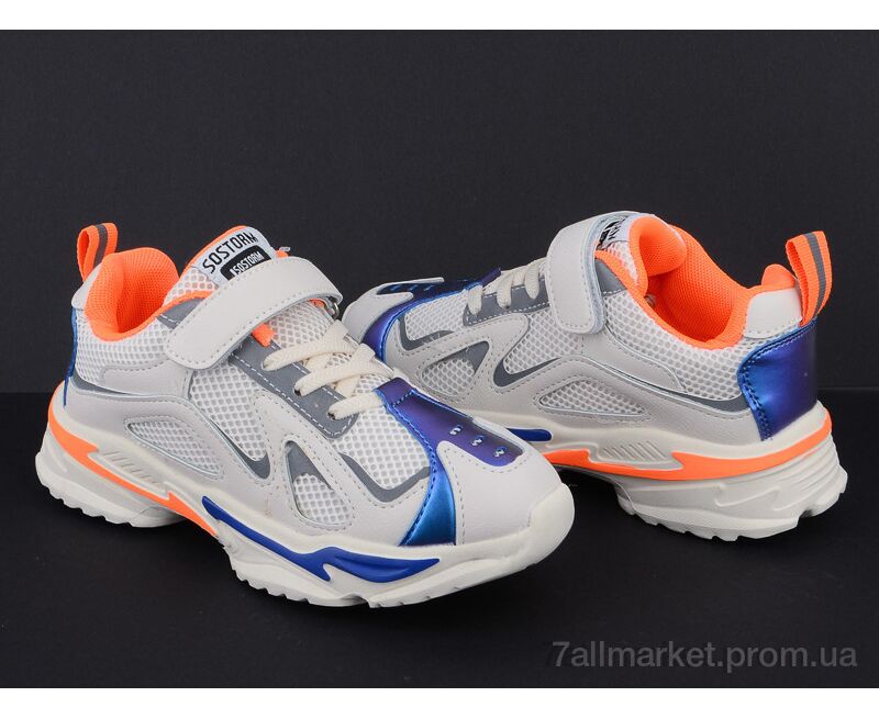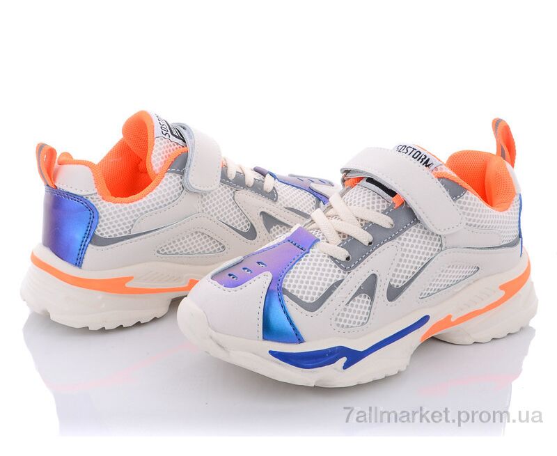 Кроссовки детские модные Весна/осень Q73-801 white-orange (6 пар р.31-36) "Violeta" недорого оптом от прямого поставщика