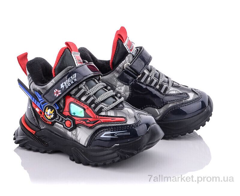 Кроссовки детские модные зима A211S black-red (12 пар р.21-26) "Мир" недорого оптом от прямого поставщика