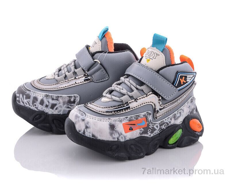 Кроссовки детские модные зима A215S grey (12 пар р.21-26) "Мир" недорого оптом от прямого поставщика