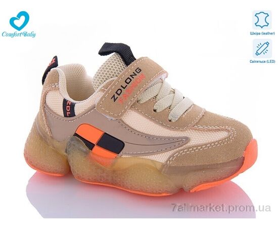 Кроссовки детские модные Весна/осень 19970 беж LED (7 пар р.26-30) "Comfort-baby" недорого оптом от прямого поставщика