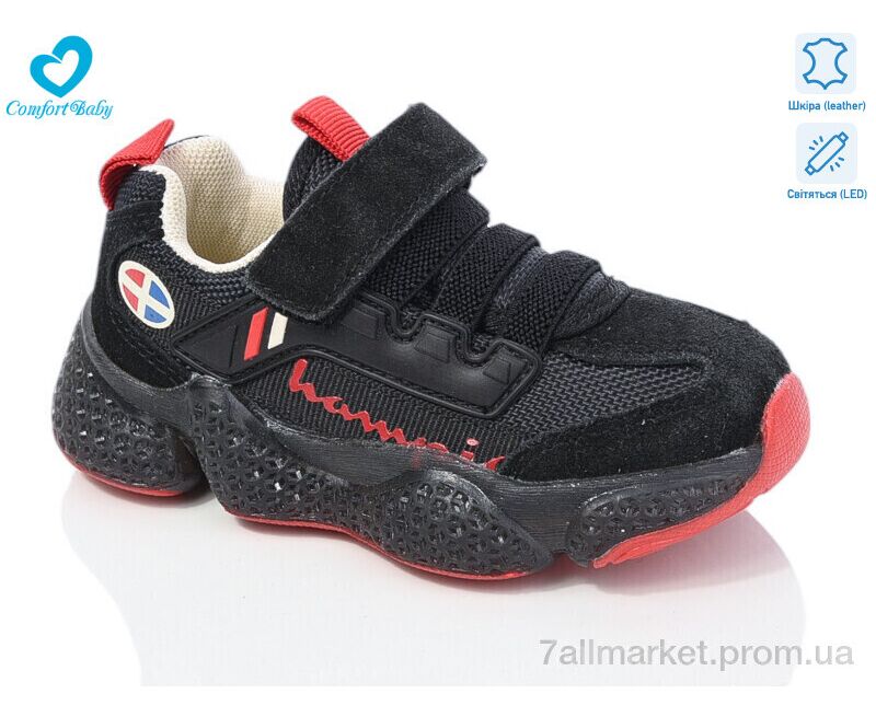 Кроссовки детские модные Весна/осень 19978 чорний LED (7 пар р.26-30) "Comfort-baby" недорого оптом от прямого поставщика