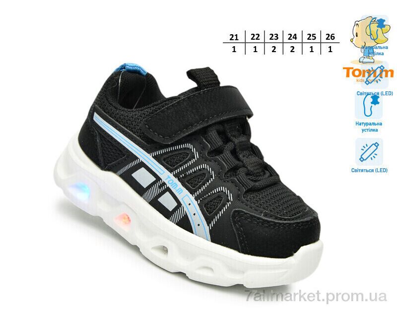 Кроссовки детские модные Весна/осень 65044A LED (8 пар р.21-26) "TOM.M" недорого оптом от прямого поставщика