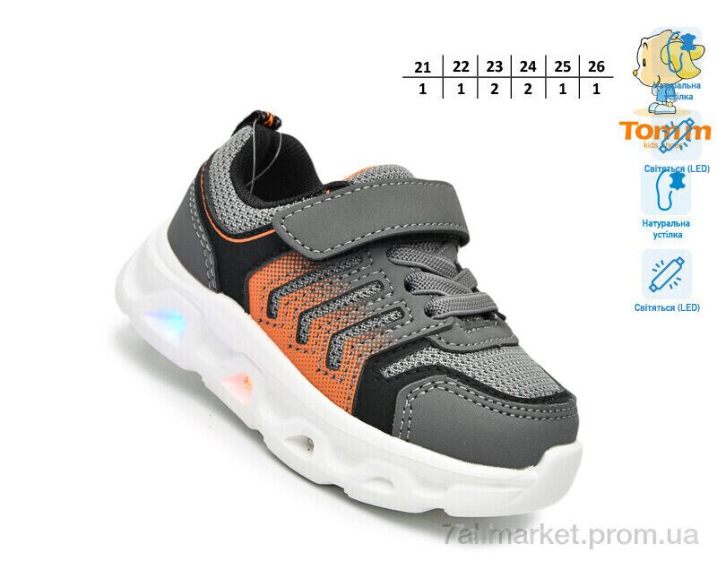 Кроссовки детские модные Весна/осень 65045B LED (8 пар р.21-26) "TOM.M" недорого оптом от прямого поставщика