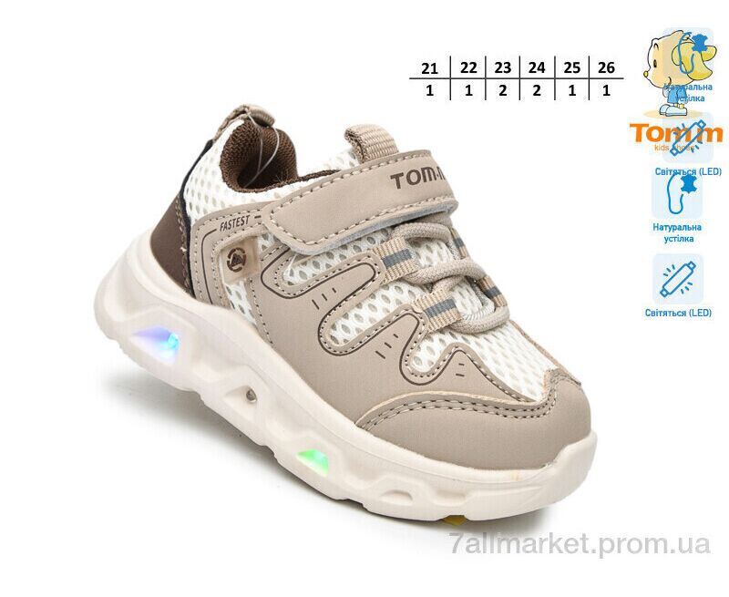 Кроссовки детские модные Весна/осень 65046C LED (8 пар р.21-26) "TOM.M" недорого оптом от прямого поставщика