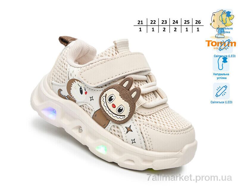 Кроссовки детские модные Весна/осень 65047K LED (8 пар р.21-26) "TOM.M" недорого оптом от прямого поставщика