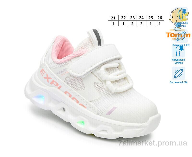 Кроссовки детские модные Весна/осень 65048D LED (8 пар р.21-26) "TOM.M" недорого оптом от прямого поставщика