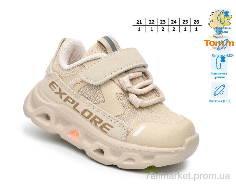 Кроссовки детские модные Весна/осень 65048K LED (8 пар р.21-26) "TOM.M" недорого оптом от прямого поставщика