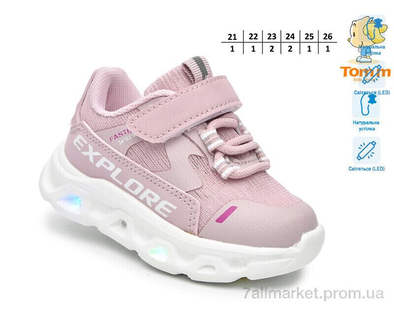 Кроссовки детские модные Весна/осень 65048M LED (8 пар р.21-26) "TOM.M" недорого оптом от прямого поставщика