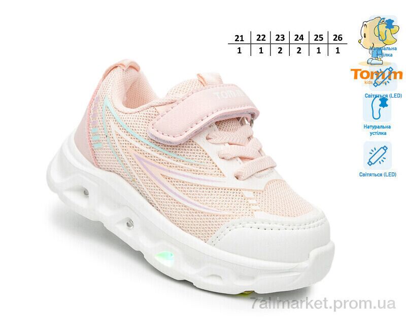 Кроссовки детские модные Весна/осень 65049E LED (8 пар р.21-26) "TOM.M" недорого оптом от прямого поставщика