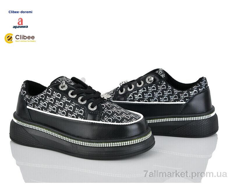 Кроссовки детские модные Весна/осень A2220-1 black (8 пар р.31-36) "Clibee-Doremi" недорого оптом от прямого поставщика
