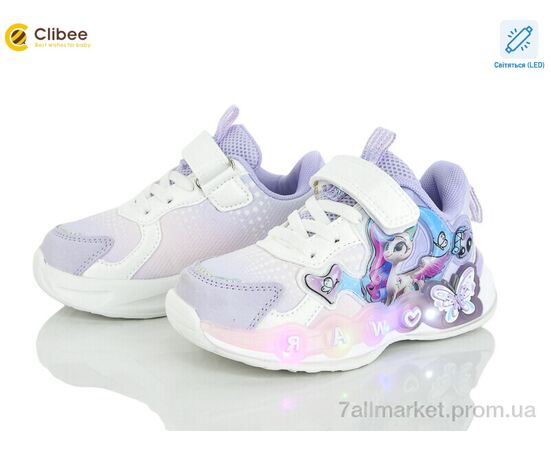 Кроссовки детские модные Весна/осень EB665 purple LED (6 пар р.26-31) "Clibee" недорого оптом от прямого поставщика