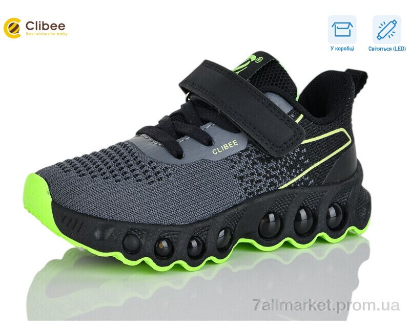 Кроссовки детские модные Весна/осень EB733-3 grey-green LED (6 пар р.27-32) "Clibee-Apawwa" недорого оптом от прямого поставщика
