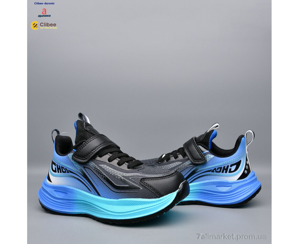 Кроссовки детские модные Весна/осень LC191-2 black-royal (6 пар р.32-37) "Clibee-Doremi" недорого оптом от прямого поставщика