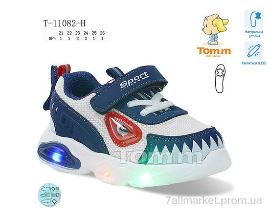 Кроссовки детские модные Весна/осень T-11082-H LED (8 пар р.21-26) "Ok Shoes" недорого оптом от прямого поставщика