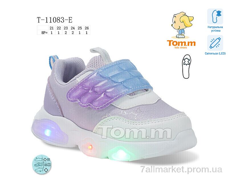 Кроссовки детские модные Весна/осень T-11083-E LED (8 пар р.21-26) "Ok Shoes" недорого оптом от прямого поставщика
