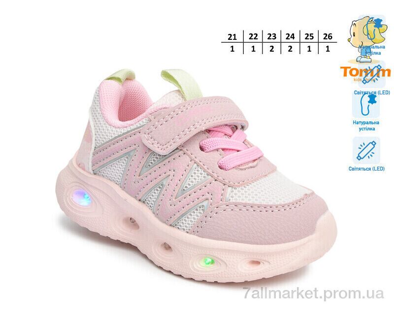 Кроссовки детские модные Весна/осень T60052B LED (8 пар р.21-26) "TOM.M" недорого оптом от прямого поставщика