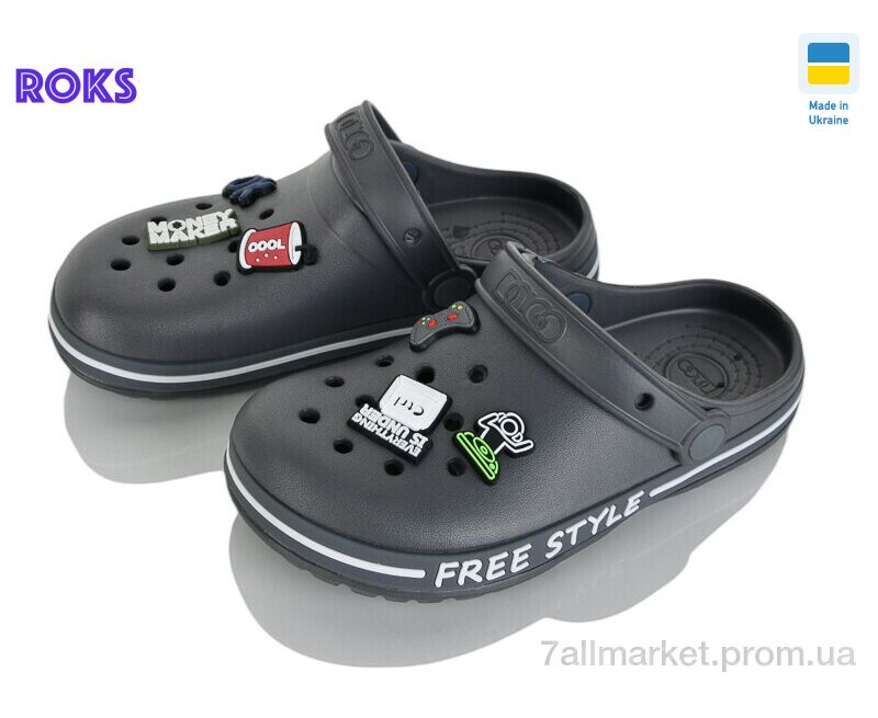Кроксы детские летние Лето 329 т.сірий (8 пар р.33-36) "Roks" недорого оптом от прямого поставщика