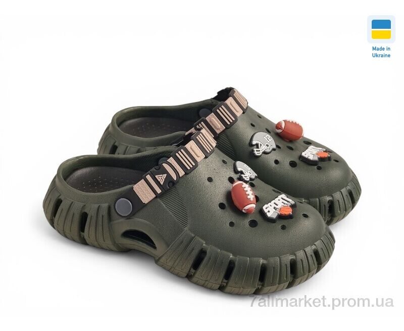 Кроксы детские летние Лето DS770 хакі-чорний (6 пар р.36-40) "Rai shoes" недорого оптом от прямого поставщика