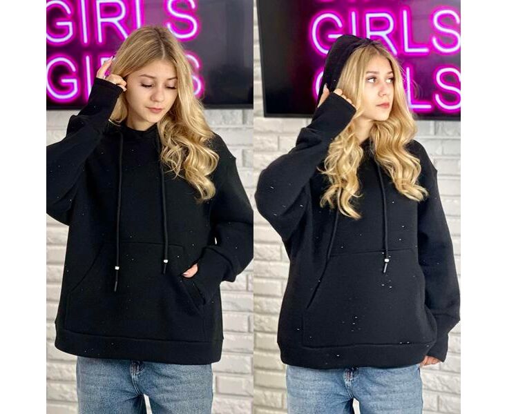 Худи детский на девочку KR342 black р.32-42 "Karolina" недорого оптом от прямого поставщика