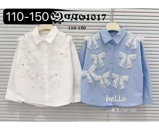 Рубашка детская на девочку 1017 white р.110-150 "Delfinka" недорого оптом от прямого поставщика