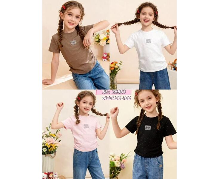 Футболка детская на девочку 26863 white р.120-160 "Farbique" недорого оптом от прямого поставщика