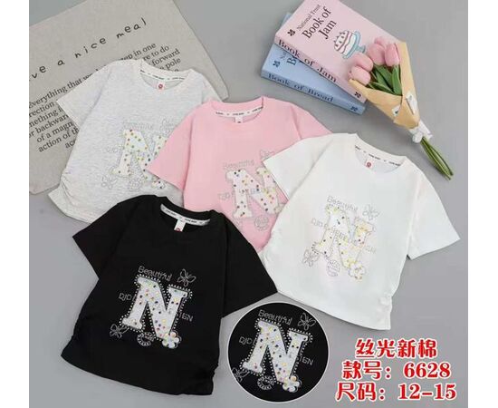 Футболка детская на девочку 6628 black р.12-15 "Farbique" недорого оптом от прямого поставщика