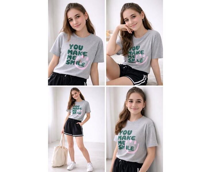 Футболка детская на девочку M472 l.grey р.140-164 "Moda school" недорого оптом от прямого поставщика