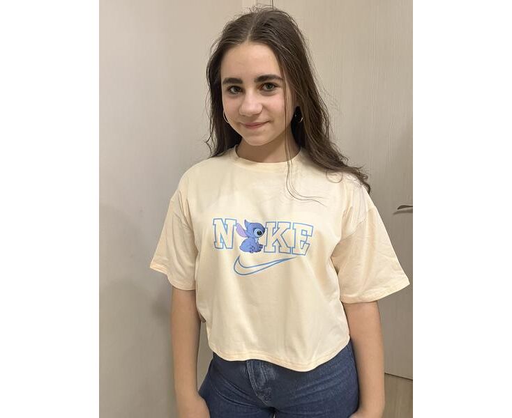 Футболка детская на девочку M480 beige р.140-164 "Moda school" недорого оптом от прямого поставщика