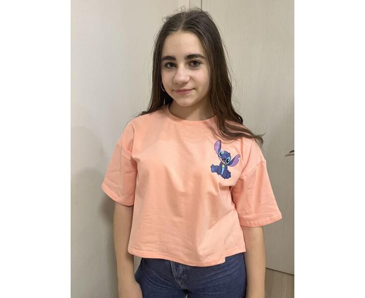 Футболка детская на девочку M481 peach р.140-164 "Moda school" недорого оптом от прямого поставщика