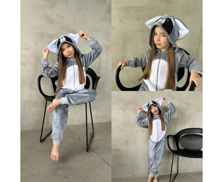 Кигуруми детский утеплённый унисекс B690 grey р.28-36 "Baykush" недорого оптом от прямого поставщика