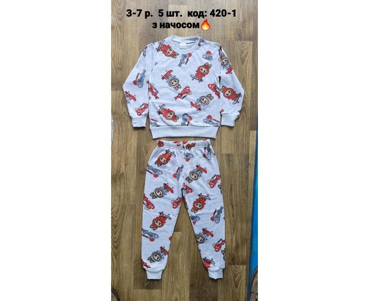 Пижама детская тёплая на мальчика 420-1 l.grey р.98-122 "iBamBino" недорого оптом от прямого поставщика