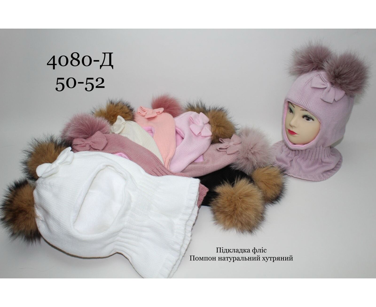 Шапка детская зимняя на девочку 4080Д mix р.50-52 "Red Hat" недорого оптом от прямого поставщика