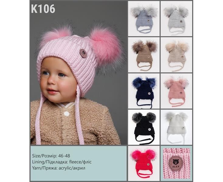 Шапка детская зимняя на девочку K106 mix р.46-48 "SELFI" недорого оптом от прямого поставщика