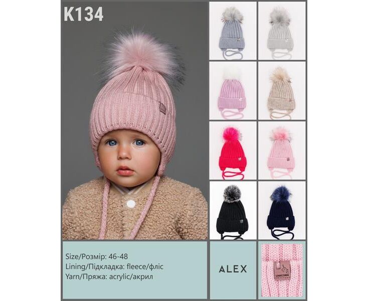 Шапка детская зимняя на девочку K134 mix р.46-48 "SELFI" недорого оптом от прямого поставщика