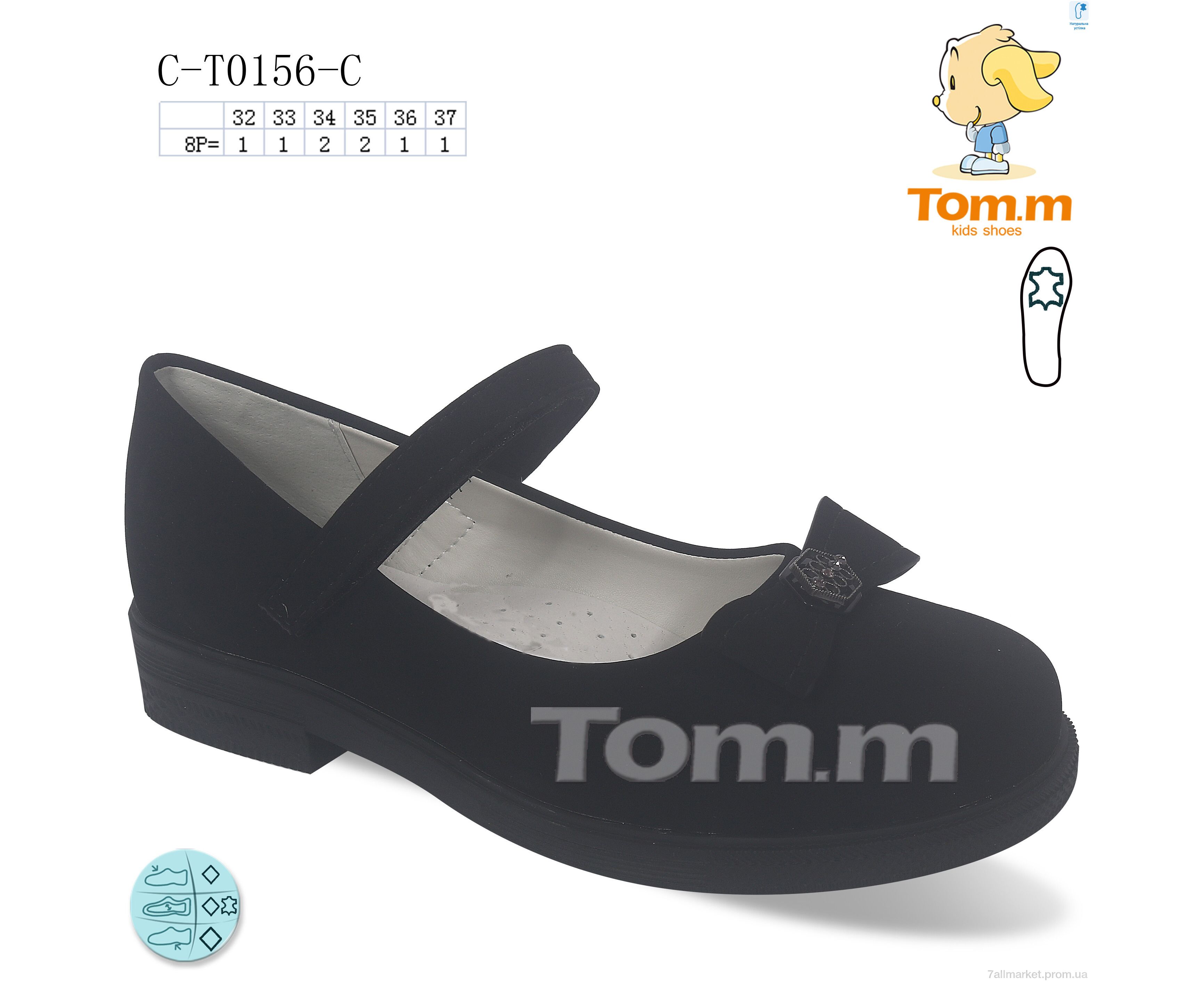 Туфли детские удобные Весна/осень C-T0156-C (8 пар р.32-37) "TOM.M" недорого оптом от прямого поставщика