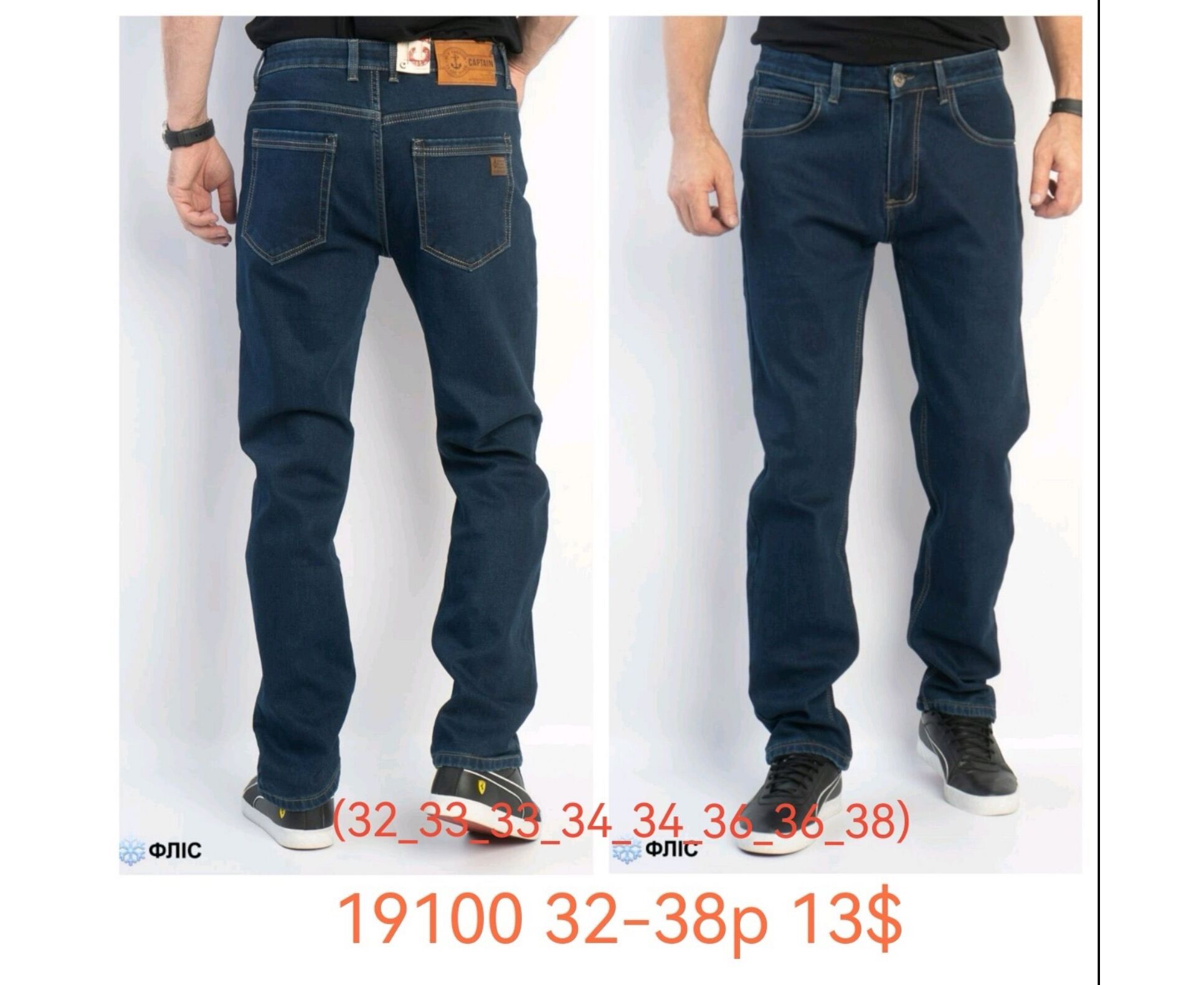 Джинсы мужские 19100 blue р.32-38 "God Baron" недорого оптом от прямого поставщика