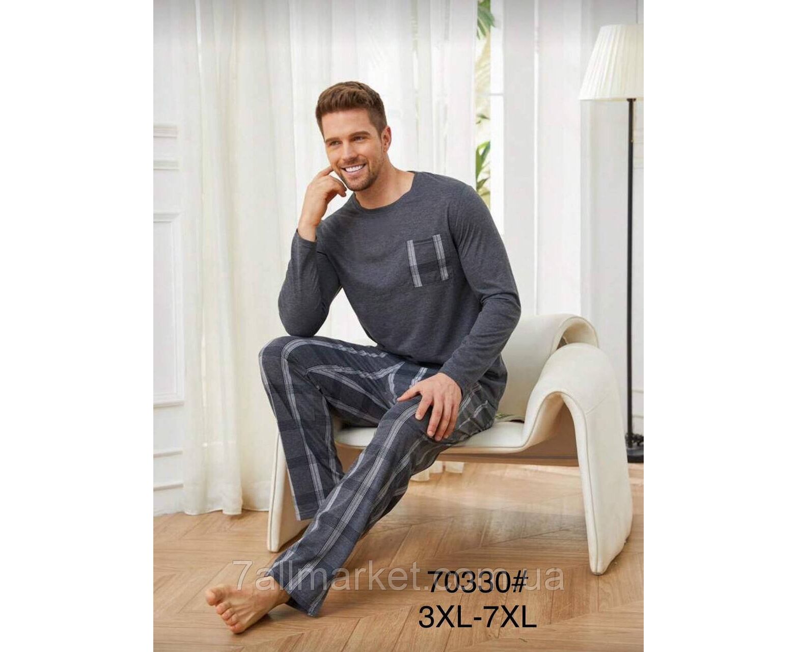 Пижама мужская с длинным рукавом размеры 3XL-7XL "FLOWER" недорого от прямого поставщика