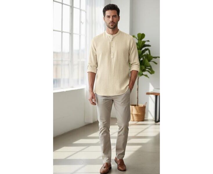 Рубашка мужская 7196 beige р.XL-5XL "ROLADA" недорого оптом от прямого поставщика