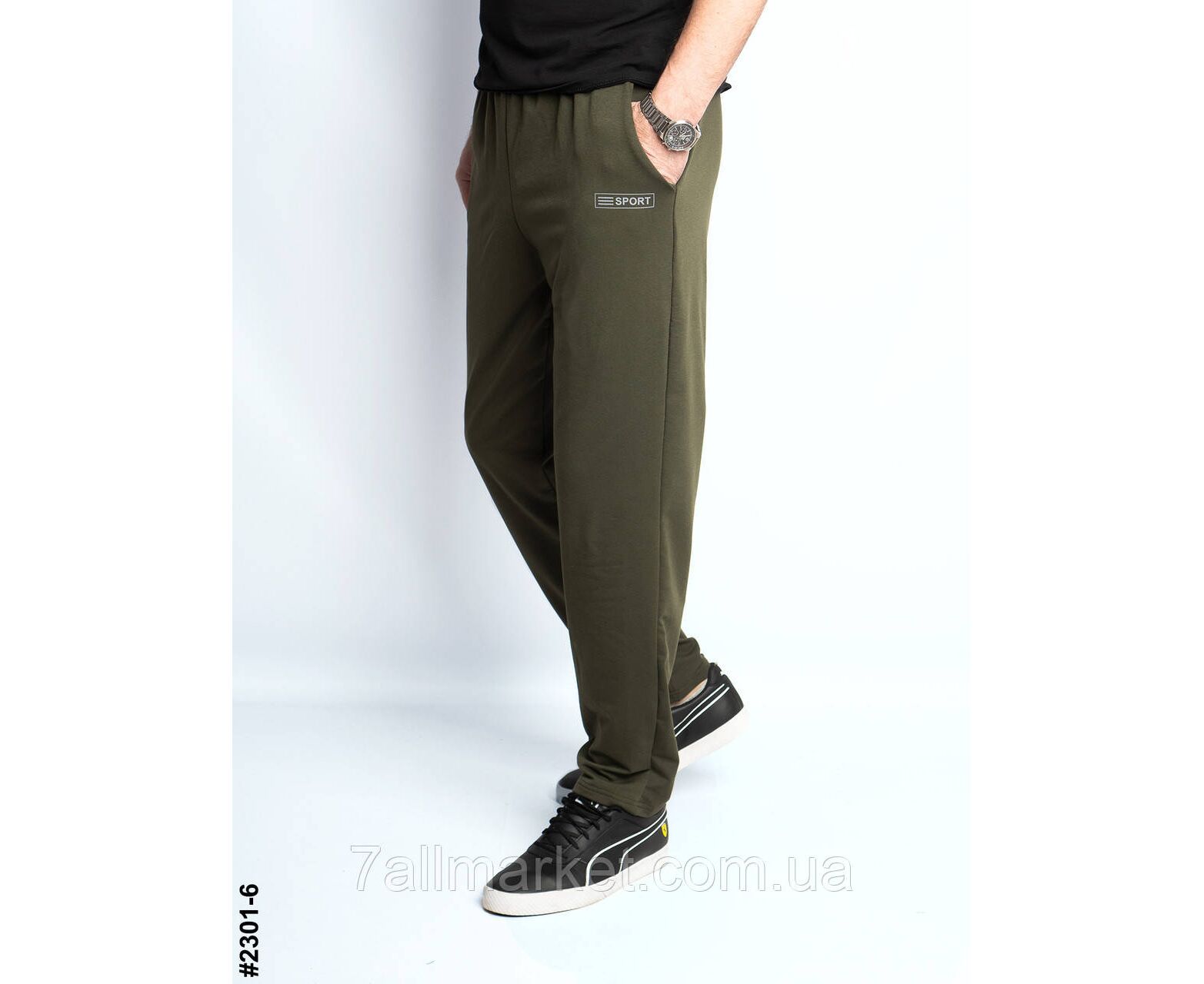Мужские спортивные брюки прямого кроя. Оснащены боковыми карманами и широким эластичным поясом на резинке. Хорошее качество ткани, удобные ростовки.
