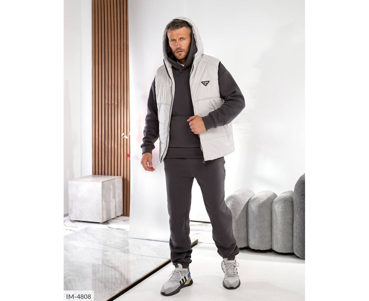 Утепленный жилет и теплый костюм – сочетание элегантности и практичности. Качественные материалы, идеальный крой и лаконичный стеганый дизайн создают образ современного мужчины, ценящего комфорт и стиль.