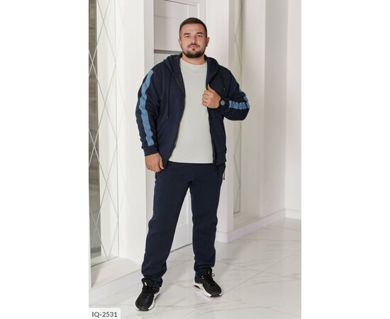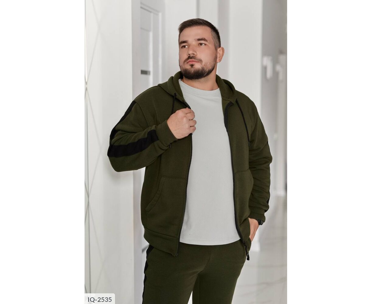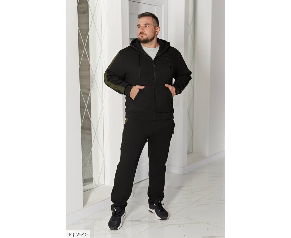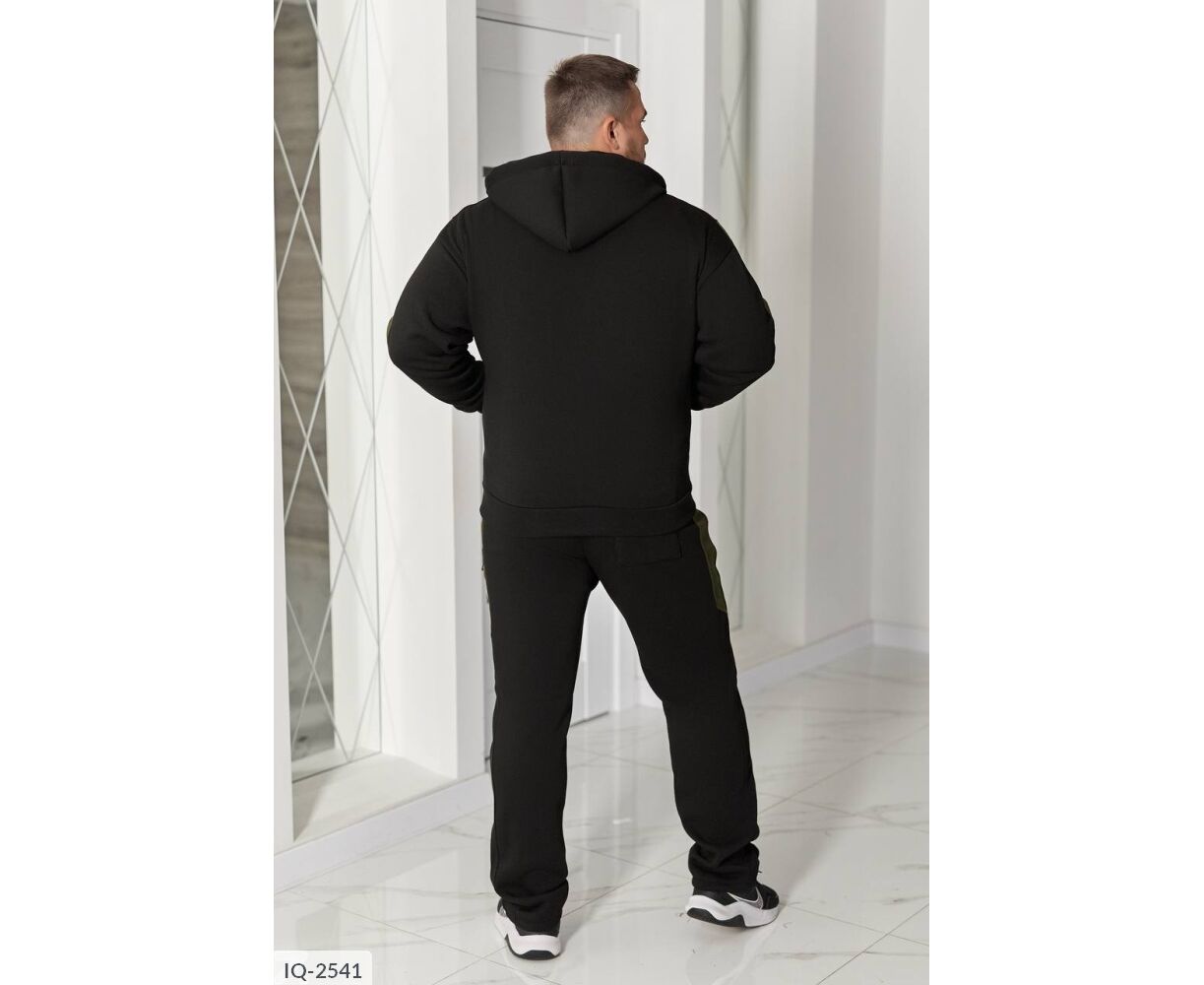 Худые прямого силуэта, имеет удобный капюшон со шнурками и центральную молнию. Два кармана кенгуру придают практичности. Низ изделия и рукавные манжеты на широком трикотажном манжете. Контрастные лампасы на рукавах и брюках делают образ выразительным и современным.