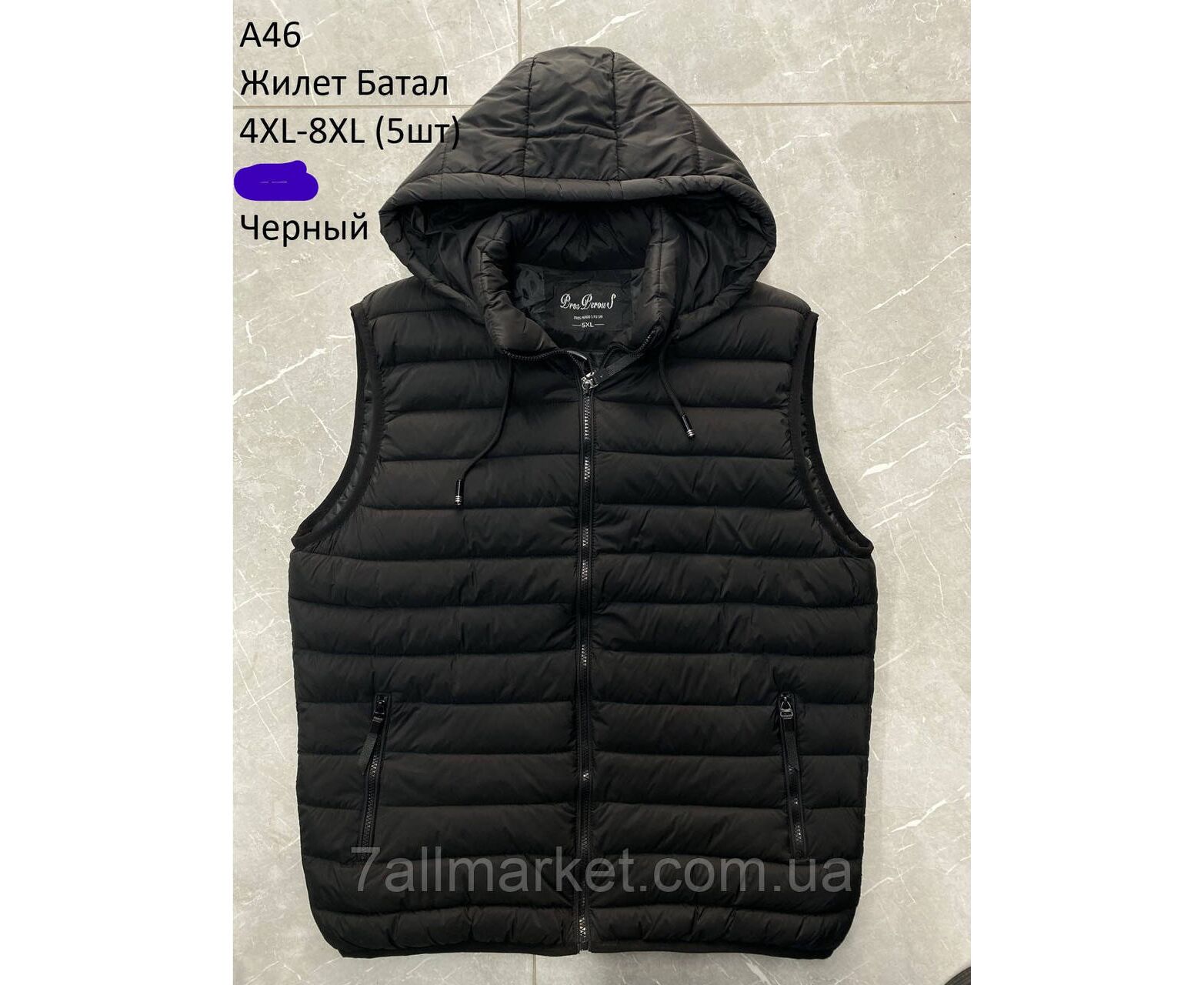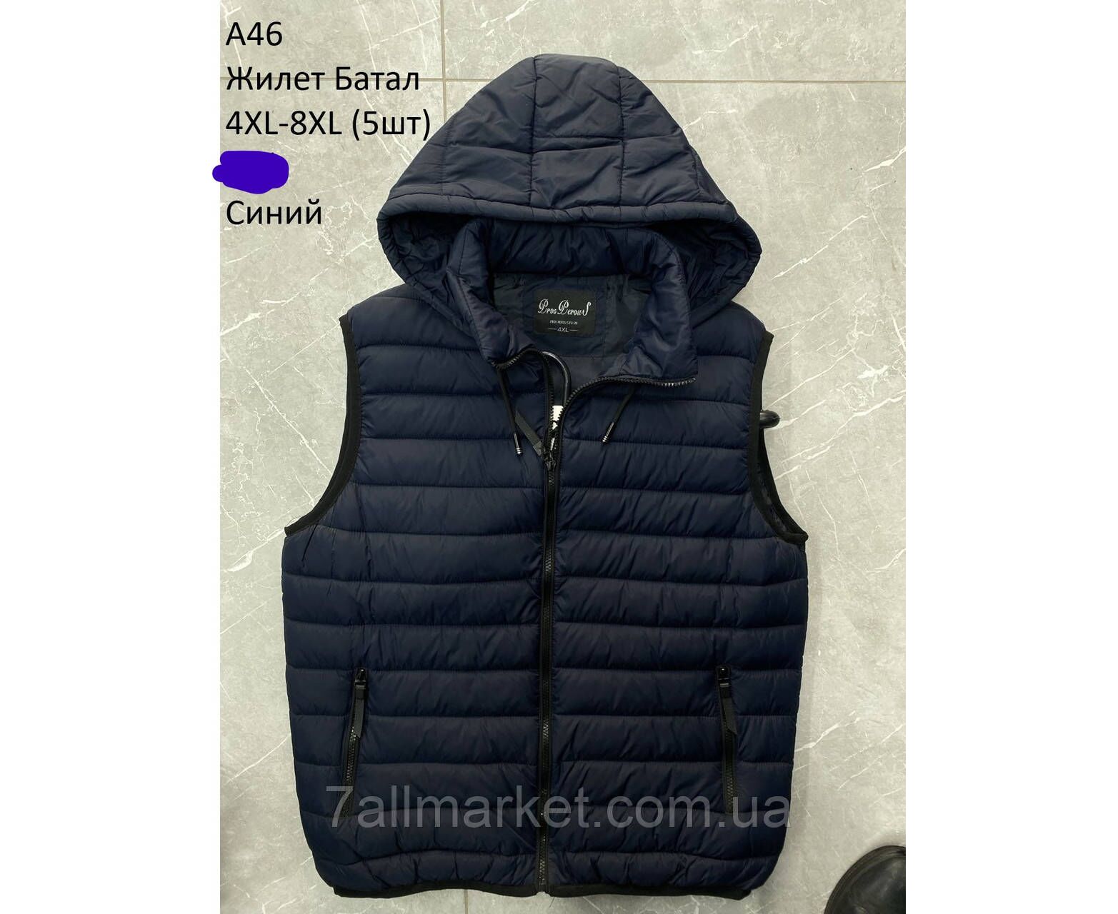 Жилетка демисезонная мужская с капюшоном батал р-ры 4XL-8XL (3цв) "NEW NOCE" недорого от прямого поставщика
