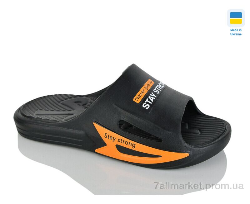 Шлепки мужские пляжные Лето М243 чорний-оранж (8 пар р.41-46) "Крок" недорого оптом от прямого поставщика