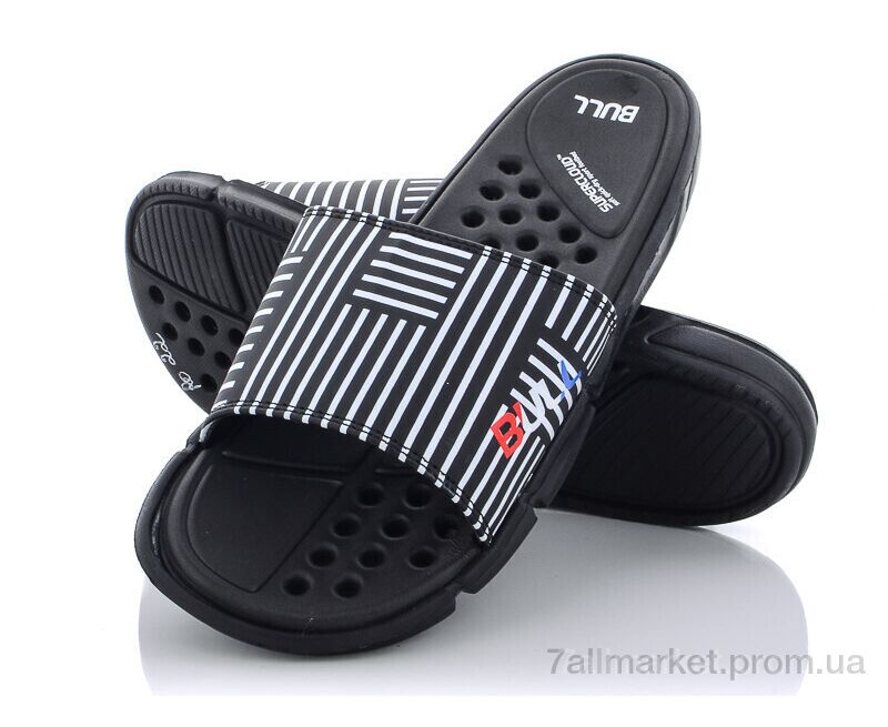 Шлепки мужские пляжные Лето R022 black-white (08841) (6 пар р.40-45) "Obuvok" недорого оптом от прямого поставщика