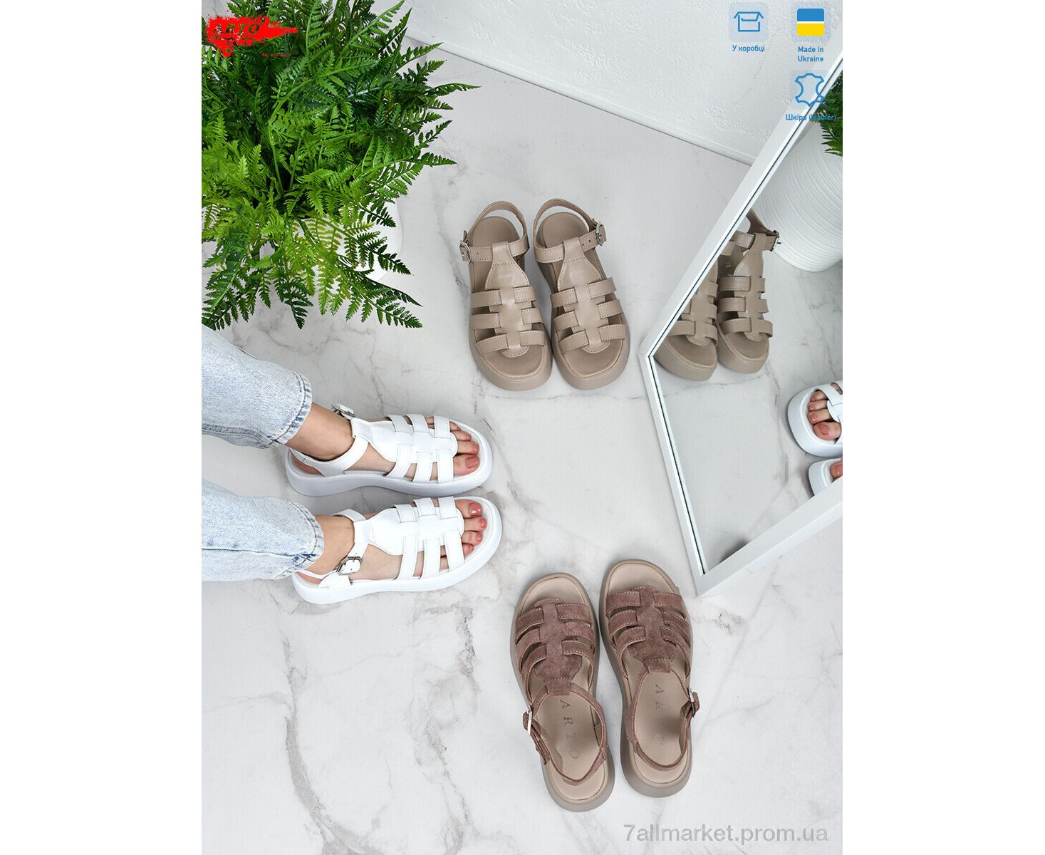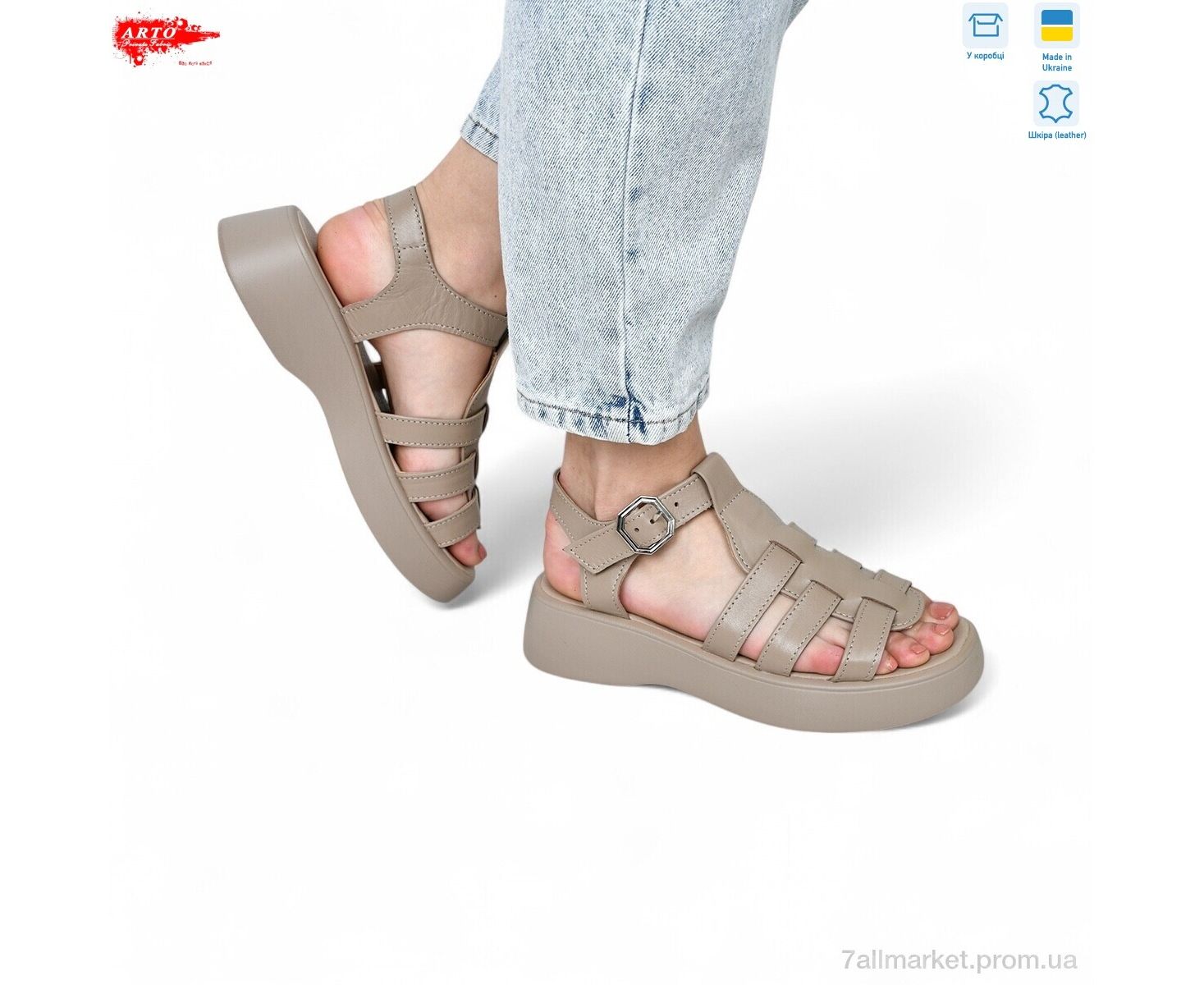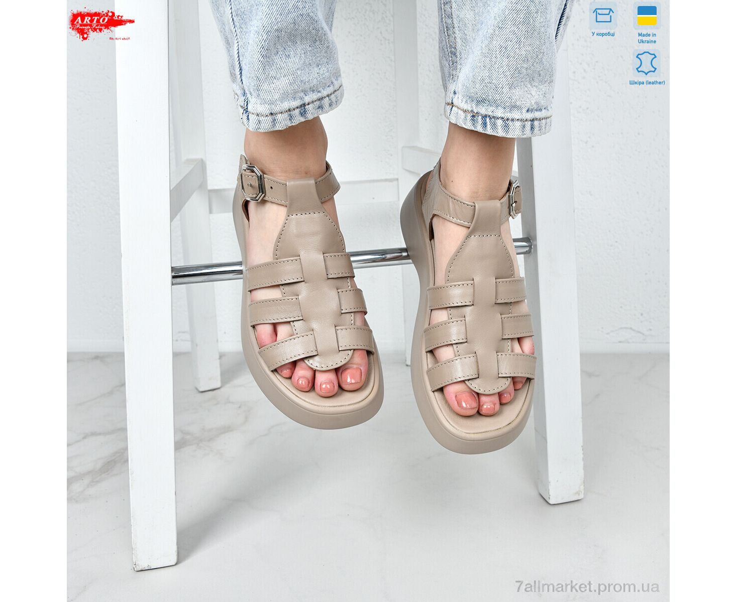 Босоножки женские летние Лето 178 латте к. (8 пар р.36-41) "ARTO" недорого оптом от прямого поставщика