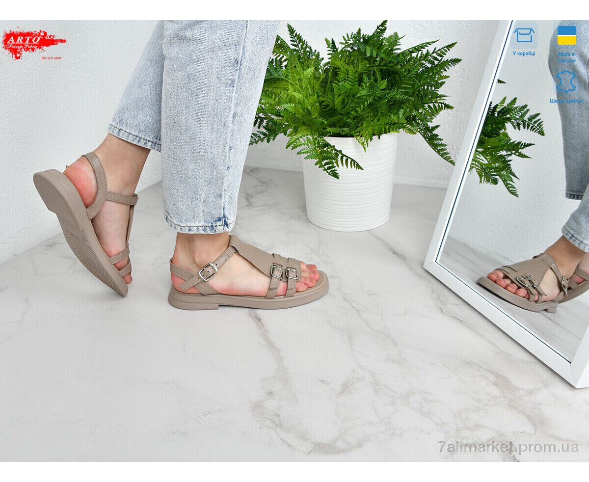 Босоножки женские летние Лето 538 латте кожа (8 пар р.36-41) "ARTO" недорого оптом от прямого поставщика